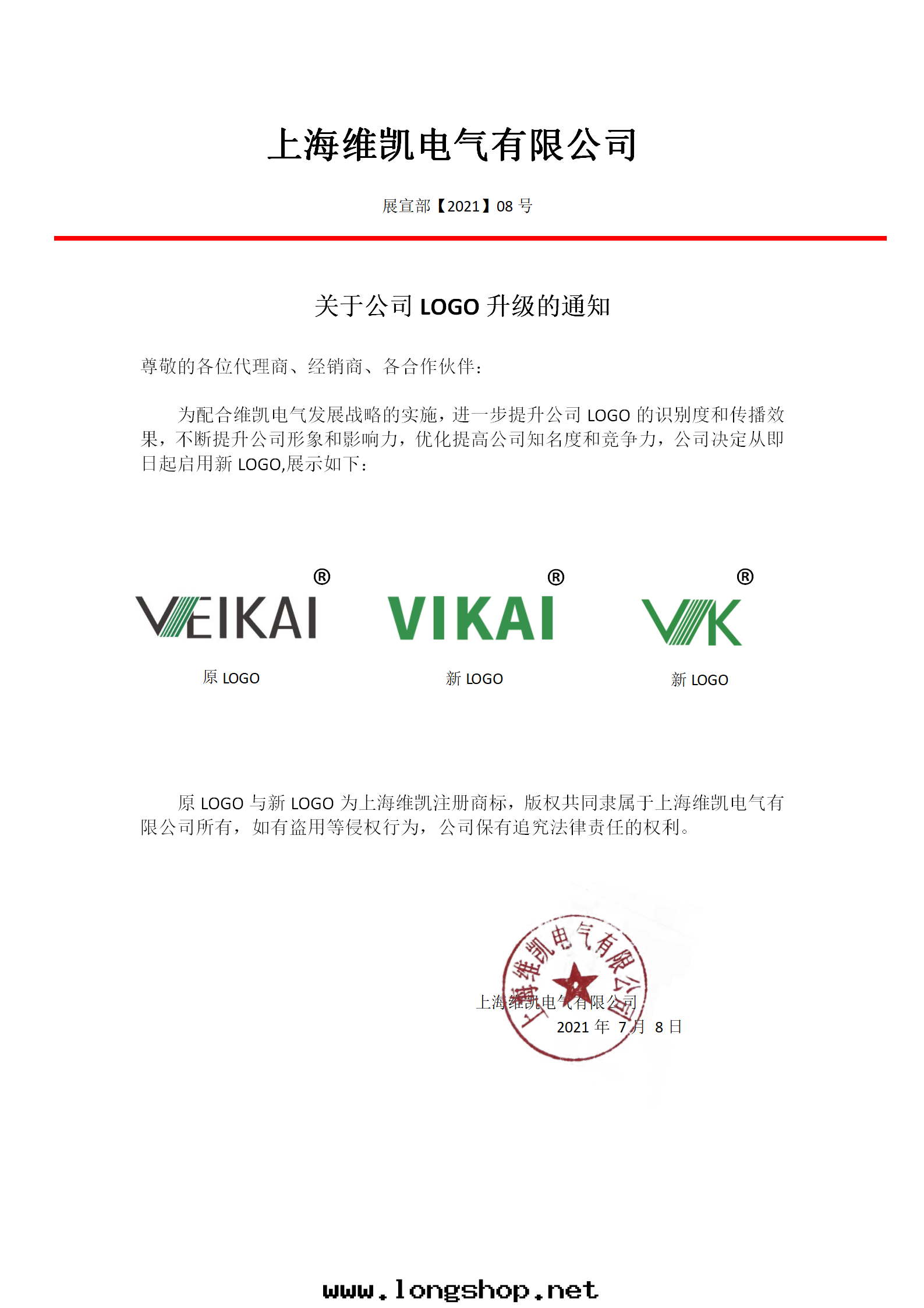 維凱電(diàn)气LOGO升(shēng)级声明(míng)