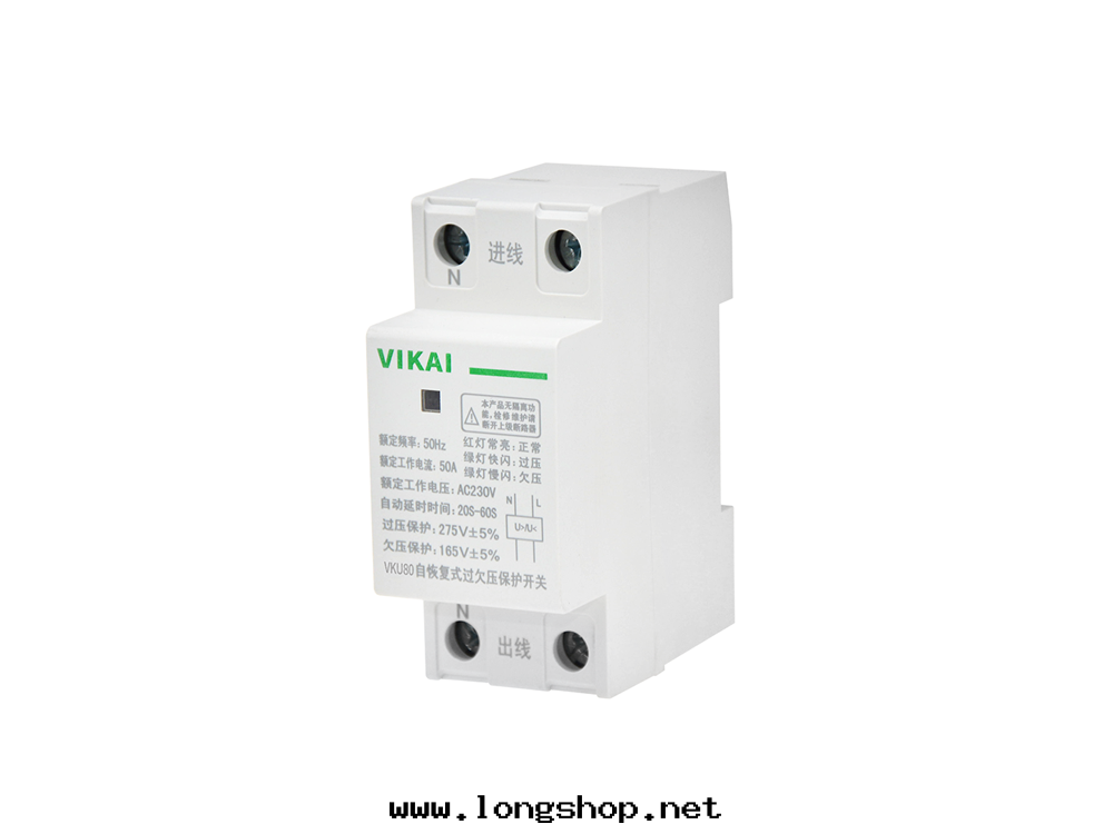首页(yè)» 産品服(fú)務(wù)» 自(zì)恢複式过(guò)欠(qiàn)壓保护器» VKU80-2P自(zì)恢複式过(guò)欠(qiàn)壓保护器